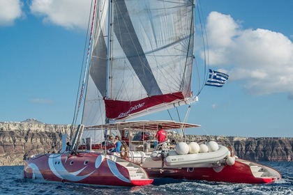 Crucero de día completo en catamarán por Santorini: explora, nada y cena a bordo del Lagoon 450F