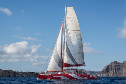 Experiencia en catamarán al atardecer en Santorini: crucero de medio día personalizado con vistas impresionantes