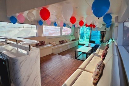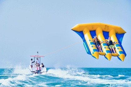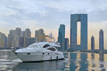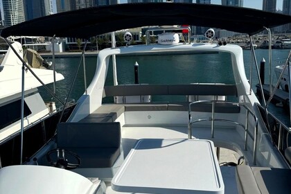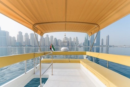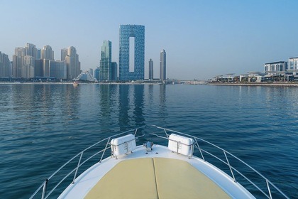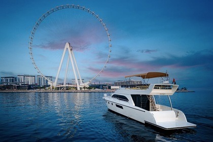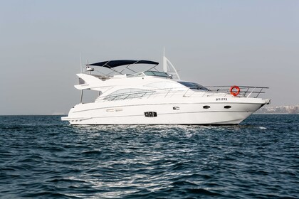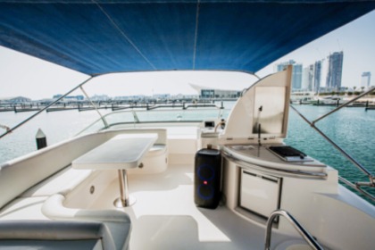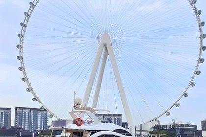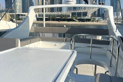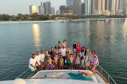 Esperienza di un giorno intero su uno yacht di lusso di 60 piedi con moto d'acqua gratuita a Dubai per un massimo di 20 ospiti, con nuoto, pesca e barbecue opzionale.