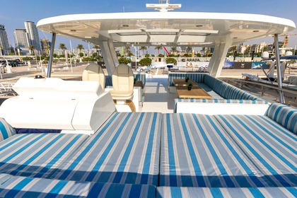 Noleggio di un giorno di uno yacht di lusso italiano di 88 piedi con Jacuzzi a Dubai Marina con nuoto, pesca e il miglior impianto audio