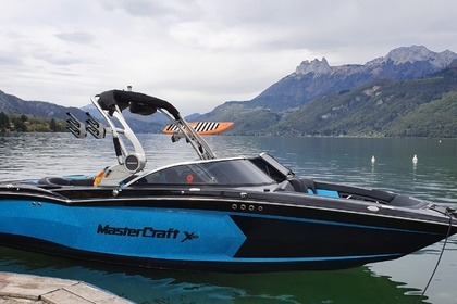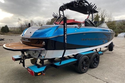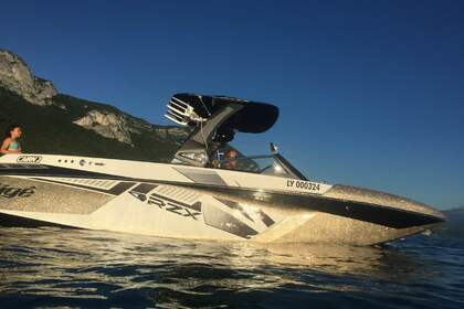 Correct Craft Super Air Nautique 230 L'un des plus beaux bateaux de WakeSurf et Wakeboard sur le lac d'Annecy. Etat Neuf. Longueur: 23 pieds (7,70 metres), largeur 2,55 Moteur 6Litres PCM de 409 Chevaux. Homologué pour 13 personnes, mais très confortable pour 10 personnes. 950 Kgs de ballasts sur une coque extrêmement performante pour une des plus belles vagues du Lac. Systeme NSS (changement de coté de vague en 1 seconde, sans avoir à remplir / vider les ballats). Système de contrôle de vitesse par GPS. Parking facile et accès par le ponton des Borenges, à Sévrier. En face du Club de Ski Nautque d'Annecy - Sévrier. A proximité de la chambre d'hôte "L'Orchidée" La location ne se fera que sur présentation du permis bateau. Le prix est de 450 euros de 09 à 12 00 ou pour 3 heures consecutives dans la journée. Ou 600 euros de 14 à 18h (ou 4 heures consécutives dans l'après midi par exemple 15h 19h). Le prix à la journée de 10 00 a 18 00 est de 890 euros. Supplement de 50 Euros par personne au delà de 10 personnes. La location part après les première 15 ou 20 Minutes pour les explications / prise en main. En de mauvais temps on remet la location à une autre date sans pénalité. Pour plus d'informations vous pouvez m'envoyer un message via la plateforme
