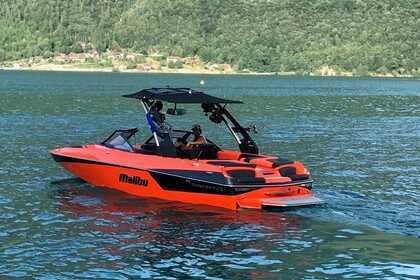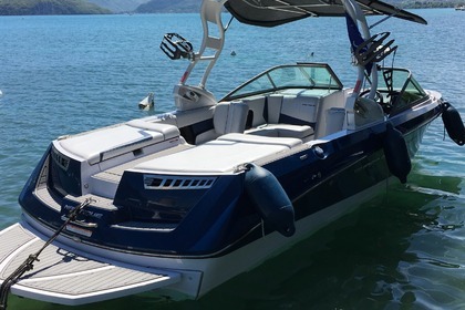 Bonjour, Nous vous proposons ce magnifique MASTERCRAFT XSTAR de 2019, bateau de dernière génération, offrant la plus belle vague à Surf du marcher, avec son équipement Wake Surf et Wake Board unique. - Réglage de la hauteur et de la longueur de la vague. - Vague + de 1m de hauteur. - Passage de la vague de gauche à droite automatiquement. - Sono en Bluetooth, Bateau très convivial avec un espace de vie immense fait pour 13 personnes. Idéal pour découvrir facilement le Wake Surf et faire une superbe balade sur le Lac. Tout le matériel de Wakesurf et Wakeboard est fournit, gilets, planches, palonniers. Plusieurs formules possibles : Location du bateau : -- 4h Demi Journée : 550euros -- Journée (10h à 17h) : 950 euros. - Formule avec pilote / moniteur + accès à notre espace avec Barbecue, bar, snack plage, paddle... : 120€ dla demi journée N'hésitez pas à nous contacter via la messagerie Click&Boat, nous serons ravi de vous organiser cette sortie inoubliable, voir d'autres activités sur place, dont notre nouveau restaurant le pied dans l'eau ! A bientôt sur le Lac. Raphael