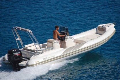 Bonjour à tous, Je vous propose à la location notre confortable Zodiac Medline III, disponible au départ de Porticcio Le Colisée près d'Ajaccio. C'est un semi-rigide de 7.3 mètres avec un moteur de 250cv. Le bateau a entièrement été remis à neuf en 2016. Le prix affiché s'entend pour 12 personnes, le bateau peut accueillir jusqu'à 14 personnes au total pour de courtes excursions. (devis personnalisés sur demande) C'est le bateau idéal pour une sortie à la journée pour découvrir Porticcio et ses environs, Ajaccio et la côte corse. Ce semi-rigide est bien équipé pour la navigation en mer. De plus son grand bain de soleil à l'avant et son moteur unique de 250cv en font un bateau à la fois très confortable et performant. Il dispose également d'une douchette de 50 litres pour pouvoir se rincer. Le bateau est non fumeur. Côté consommation, le moteur est peu gourmand au regard de la taille du bateau, comptez entre 35 et 40 L. de l'heure pour une vitesse de croisière d'environ 22 nœuds nautiques. Les tarifs n'incluent pas le carburant et l'avitaillement. Ces derniers restent à la charge du locataire. Il n' y a pas de pompe à essence pour les bateaux à Porticcio mais notre bateau dispose de 2 grands réservoirs et d'un compteur de consommation, pour éviter les problèmes, je me charge de refacturer votre consommation à 2€ le litre (pas de possibilité de faire le plein par vous même). Ceci prend en compte le temps et la distance nécessaires pour réaliser le complément, et vous permet de profiter pleinement de votre journée de location. Envie de faire de la bouée tractée ? Faire une cession de wakeboard ? N'hésitez pas à me contacter via la messagerie de Click&Boat. Je serai ravi de vous répondre. A bientôt, Alexandre