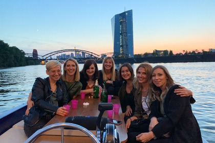 Bachelorette party on a motorboat in Frankfurt with skyline view - 1h30